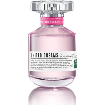 United Dreams Love Yourself de Benetton es una fragancia de la familia olfativa Floral Frutal para Mujeres. United Dreams Love Yourself se lanzó en 2014. Las Notas de Salida son frambuesa, pera, bergamota y chabacano; las Notas de Corazón son rosa, fresia y jazmín; las Notas de Fondo son almizcle, sándalo y ámbar.